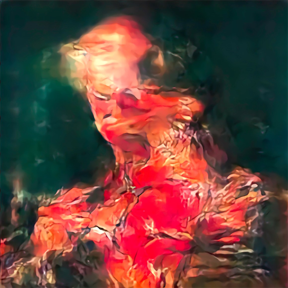 The second series plays with the tradition of memento mori. In doing so, it highlights the ability of AI’s pseudo-intelligent neural networks to let us more closely examine the nature of visual meaning-making, via a reflection of our own intelligence in a machine. “Deep learning” algorithms have propensities that eerily mimic the human brain, exhibiting behaviors such as fractal-like hallucinations or producing abstract compositions that invoke seemingly atavistic or subconscious sources.