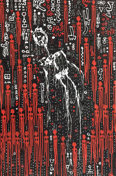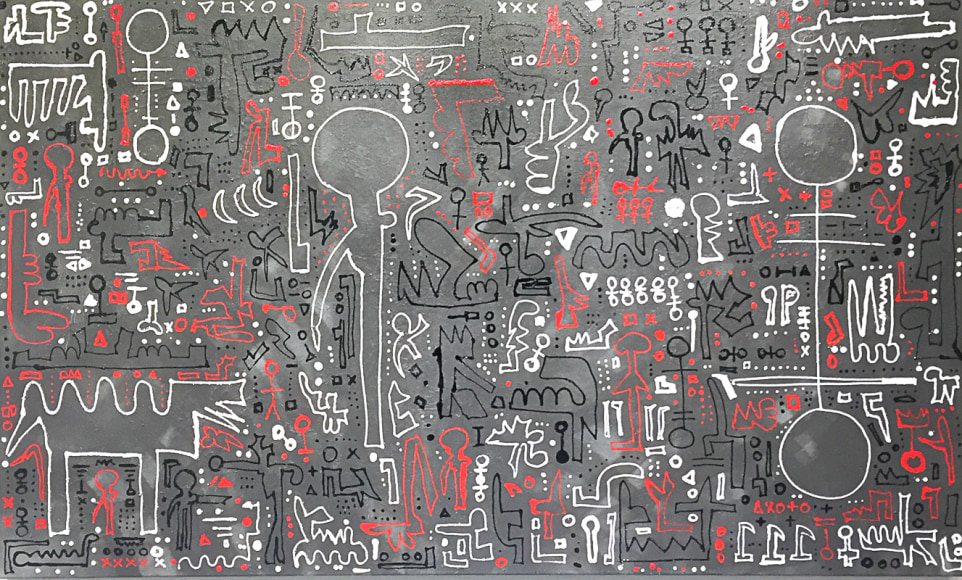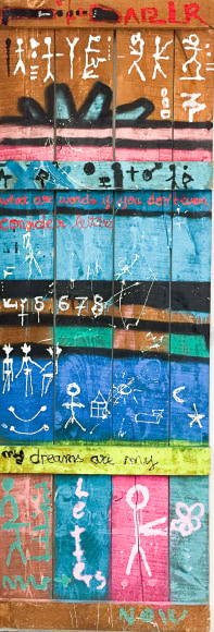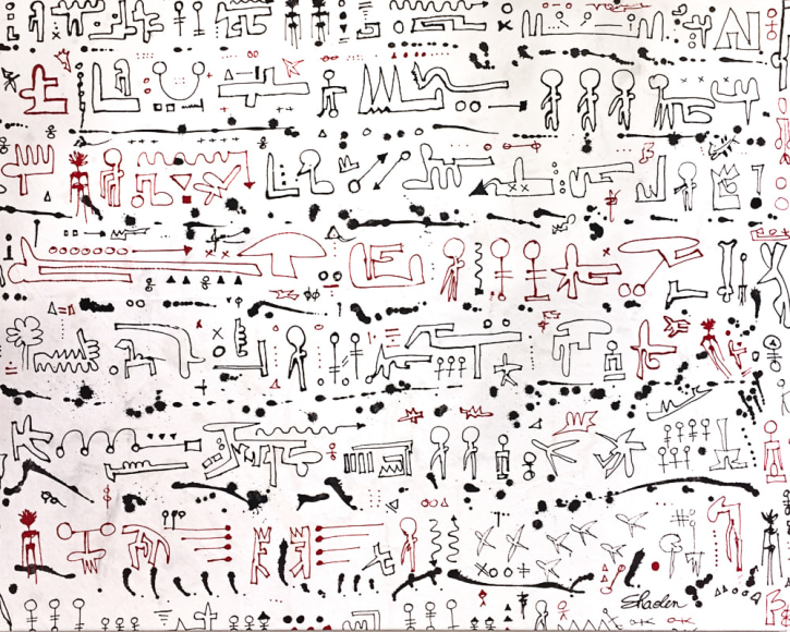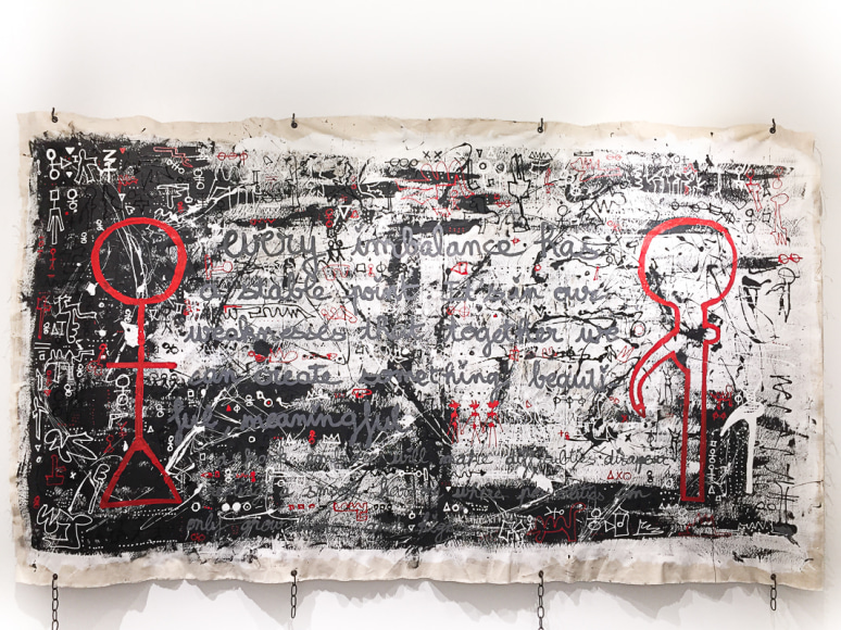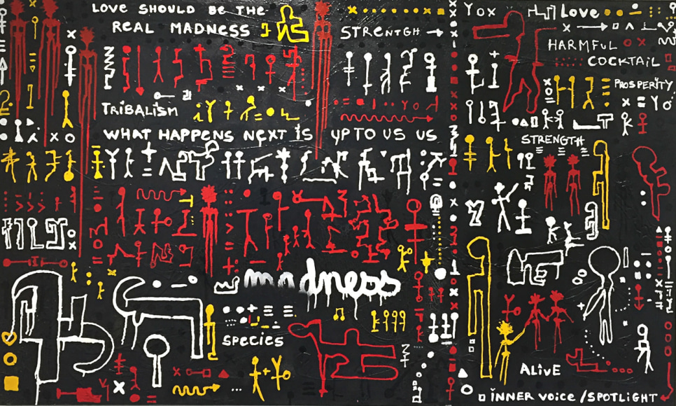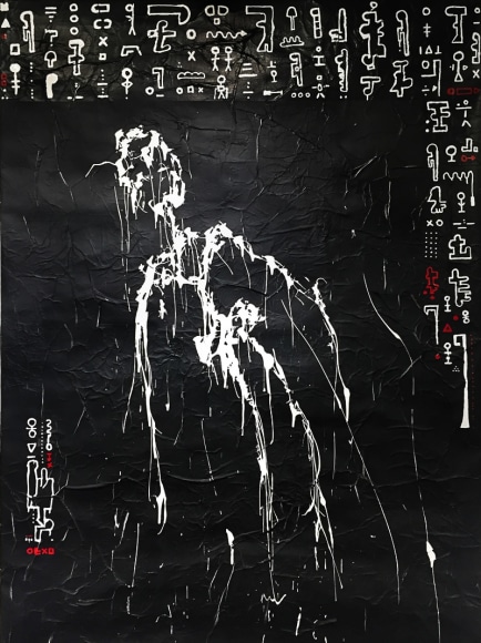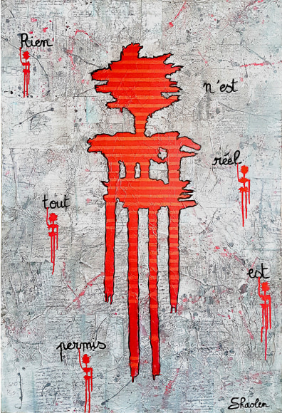 Charlene Vanneste (b. France) is of French Indonesian origin, specifically North Sumatran. Her bloodline leads back to the early Batak settlers from mainland Asia. In returning to Indonesia after an almost exclusively Western upbringing, Vanneste reconnected with her roots. Exploring different mediums, Vanneste’s origins guided her to adapt her hieroglyphs not only onto canvas, but also to the streets under the name Shaolen. Creating a new, fresh, and modern vibe the mysterious yet enchanting characters, which have become her signature style, can be found painted around the world in spots such as London, Paris, Istanbul, and Bali. Vanneste has exhibited in Asia and her artworks are held in private collections in Asia, London, Istanbul, France and the United States.