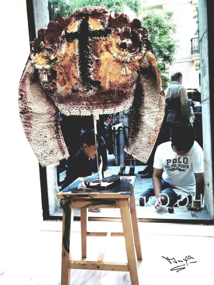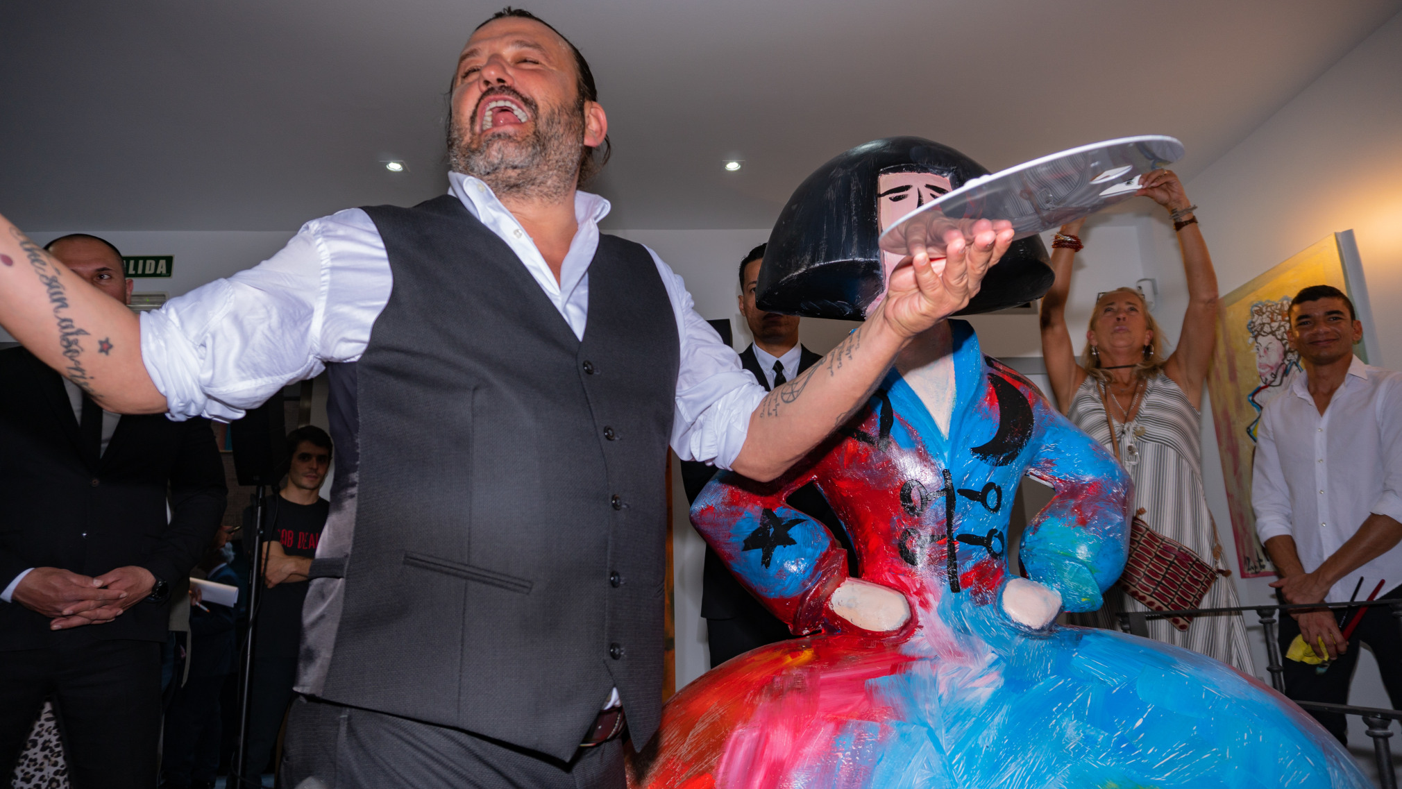 Domingo Zapata paints 'la menina' during the inauguration in Madrid