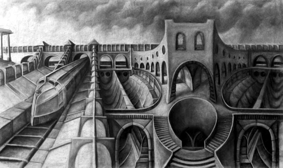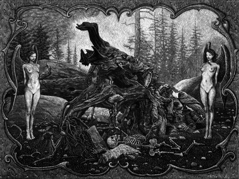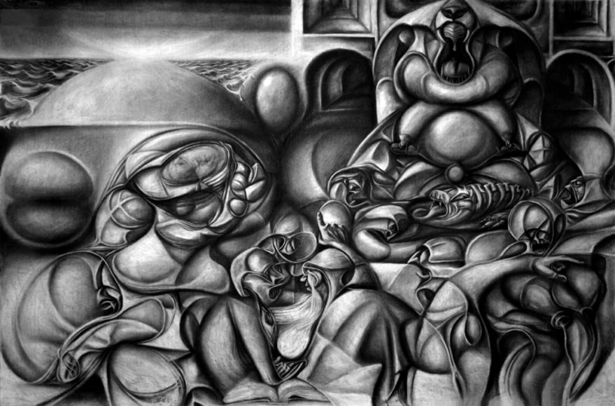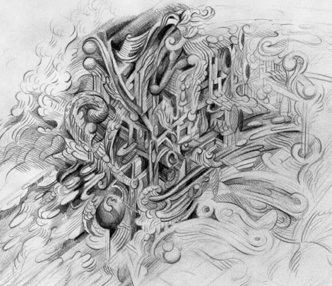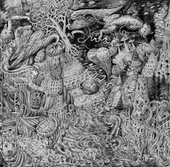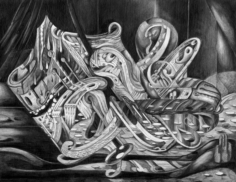 With Subconscious Narratives Welker depicts a thought before it becomes a word, concept, story or tangible form. These studies are not isolated to one brief instant but instead capture the turmoil of forms transitioning in the mind from moment to moment. By getting in tune with his minds eye Welker has noticed that the periphery of each thought has edges fading into others. His imagination hovers in a space devoid of temporal constraints or physical permanence. This is the conceptual DNA of Subconscious Narratives - an exploration of the cloudy impressions leading up to and receding from a fabricated instance. While the center of the pieces may be a conceptual focus, the edges form building blocks for dreams not yet depicted. The subconscious narrative barely holds onto the present while the past and future drive into being. Its beginning is another’s middle and end.