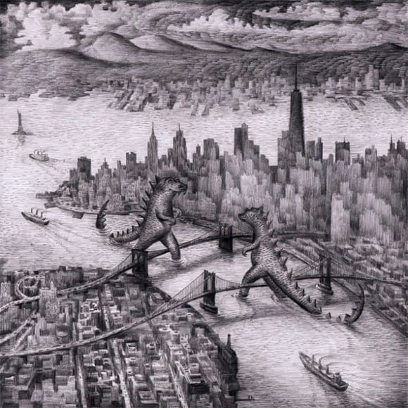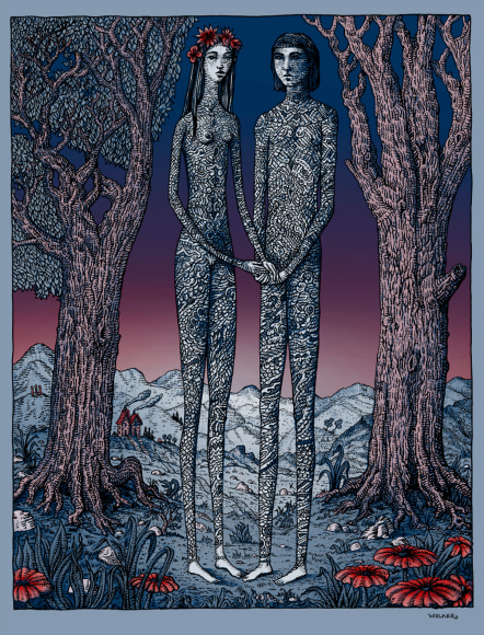 the artist’s first solo show in New York City. Welker has followed a path of experimentation and genre jumping taking him from the top of the landscape mural scene to the top of the concert poster scene in just a few years. Welker is now setting his sights on the gallery world as he continues to express all of his varied influences in a unified visual aesthetic which combines his deep appreciation of early 20th century Surrealism with his love of pervasive pop culture.