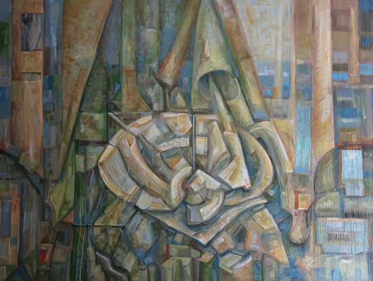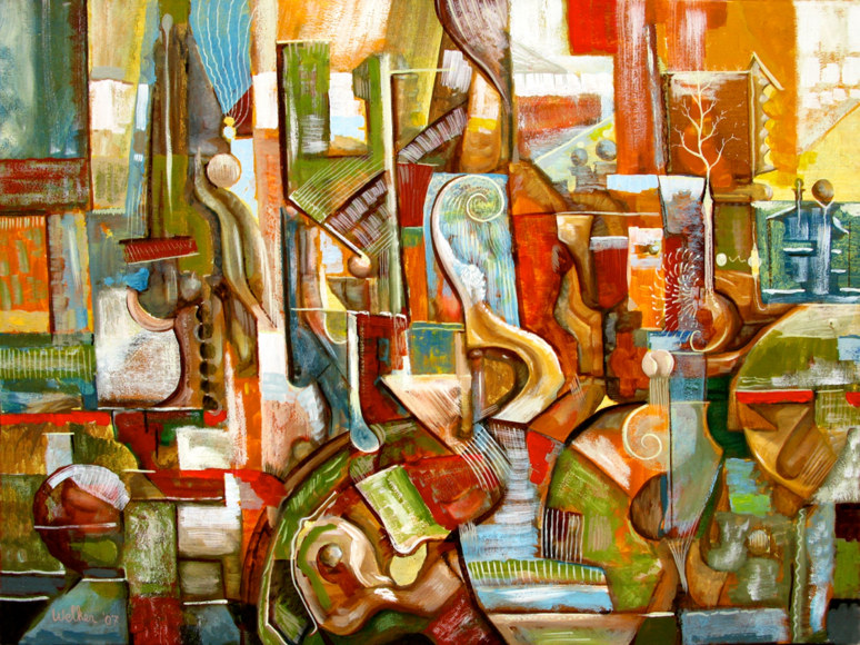 Having spent the last several years immersed in conceptual realism, David Welker has let go of the planning involved in that technique. Now the paintbrush and mind play together in a harmony of improvisation. David’s spinal chord drips directly onto the canvas, allowing his subconscious to reveal itself through the physical application of paint onto canvas. The narrative dictates what it wants to become rather than mapping out every aspect of its development. The blueprint only reveals itself in hindsight. For him, this is the closest representation of how his subconscious operates.
