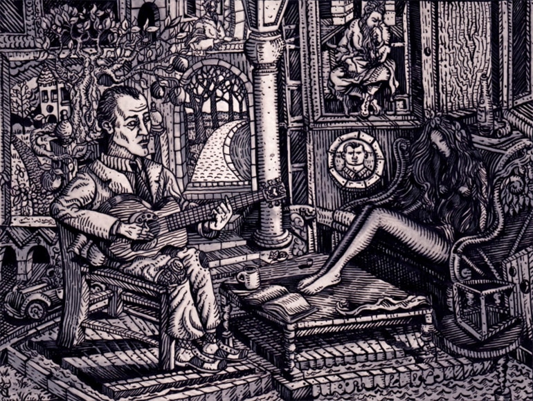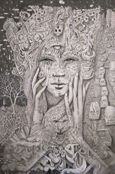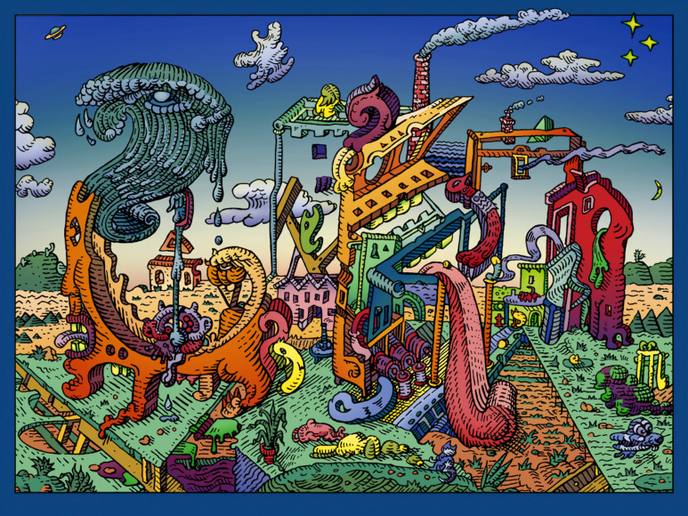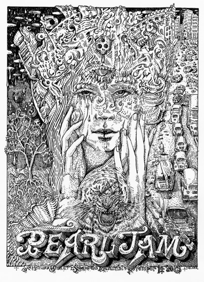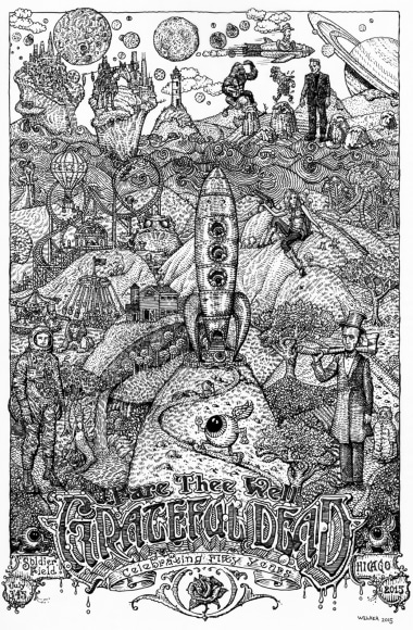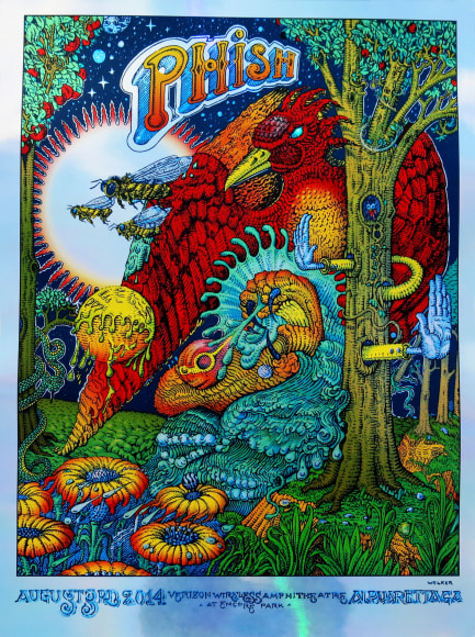 Welker is a NYC based contemporary visual and musical artist known for his elaborate rock posters, murals and paintings, ranging from fantasy landscapes to urban realism. His work over the last two decades has built a devout following from private collectors and celebrities to indie and pop-rock musical acts, including The Grateful Dead, Phish, Pearl Jam, The Black Keys and many others. Welker’s visual style mixes depression era Surrealism with a contemporary take on underground comics. His work, enigmatic and ever changing is always a challenge to classify, but perhaps can best be described as “modern, urban, psychedelic, .