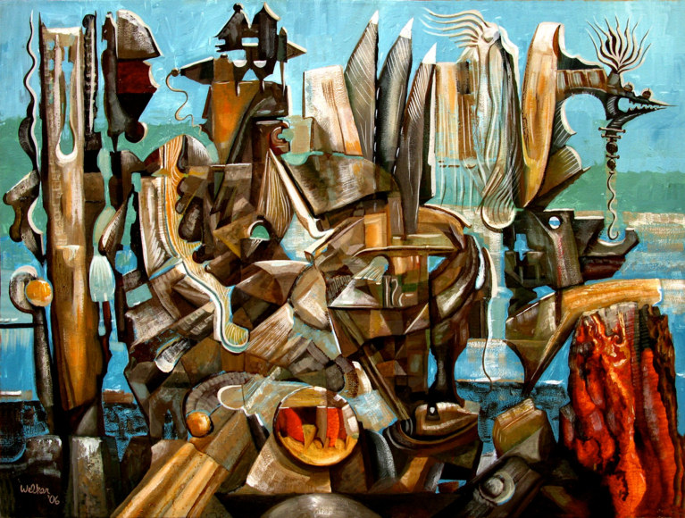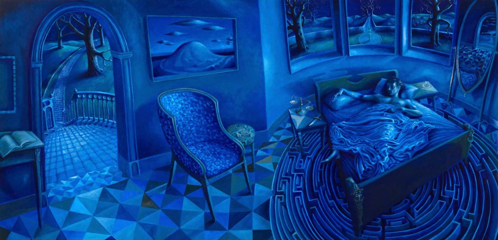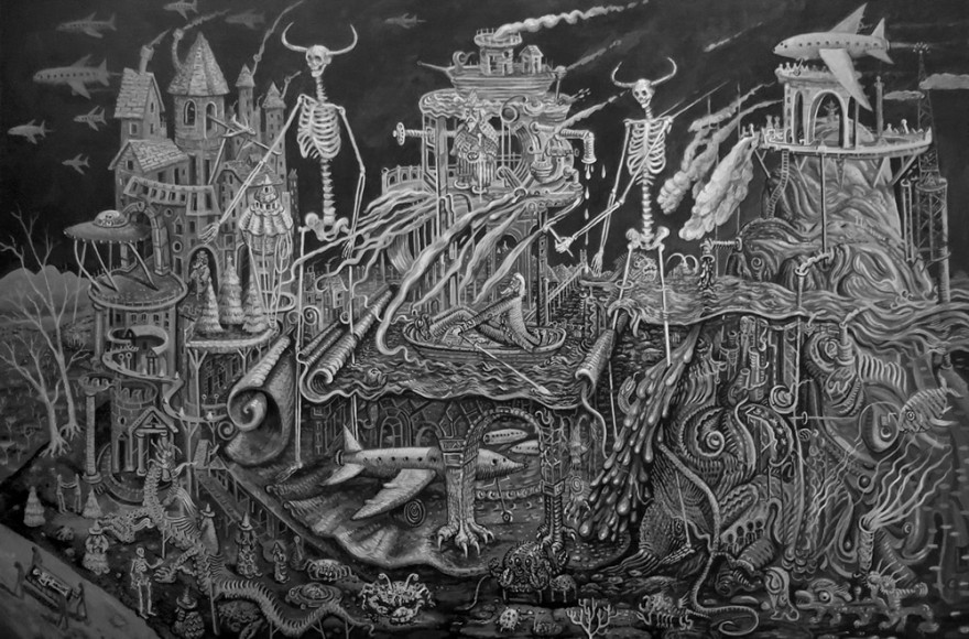 David Welker tells us that “The reason I chose to depict my subconscious with paint is because this form is a tangible reality others can interpret. It is a rosetta stone for our minds. While there may seem to be a story or a narrative taking place in a piece, the audience is invited to make synaptic leaps in his or her own subconscious to interpret the story for his or herself.”