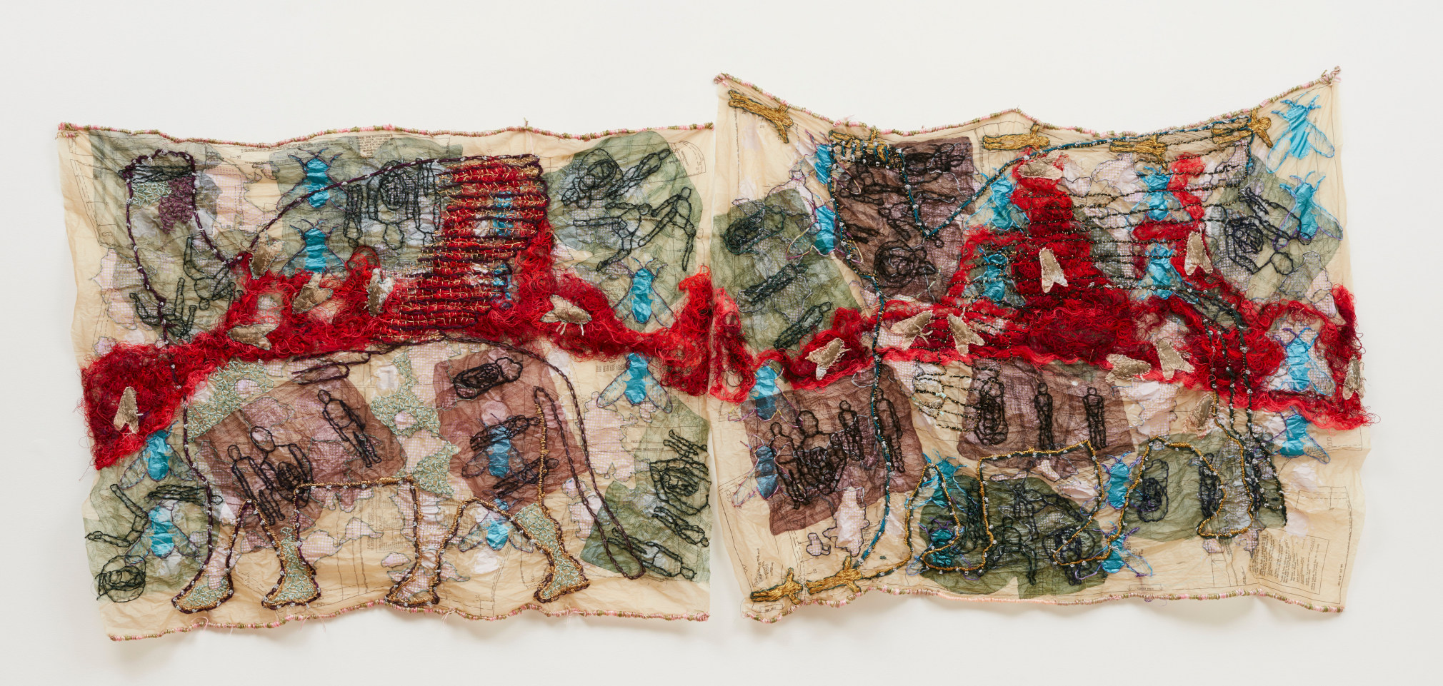 Silk screen, collagraph, embroidery on cloth pattern paper